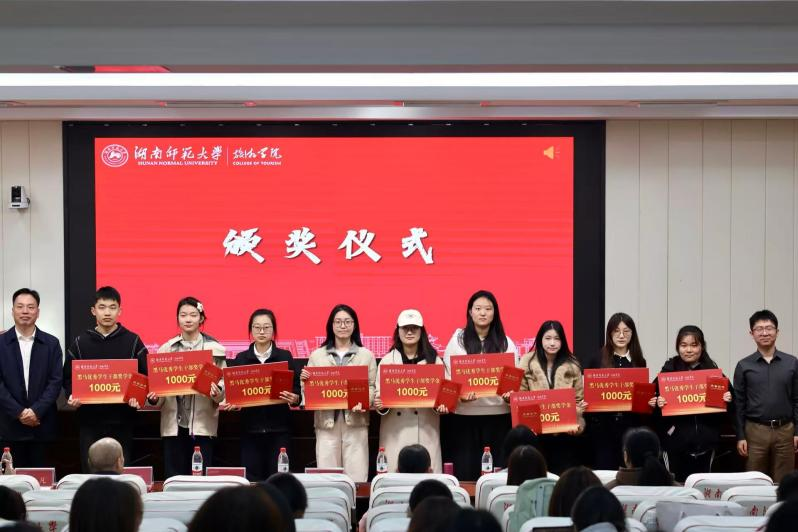 贺小荣宣读获奖名单,与会领导和嘉宾为获奖学生颁奖。