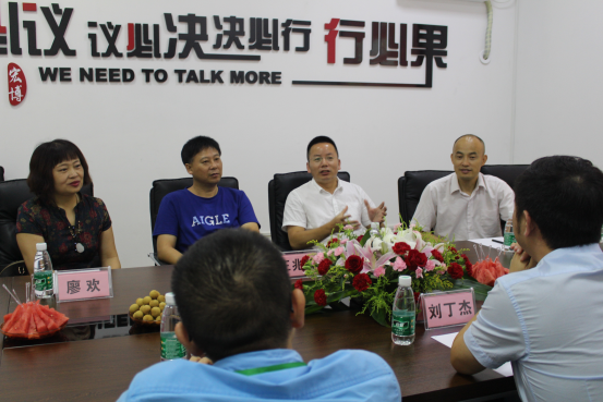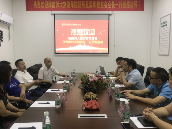 (通讯员张悦)7月19日下午,我院院长王兆峰、副院长贺小荣、党委副书记廖欢及学院深圳校友分会会长张信东一行考察湖南宏博教育科技发展有限公司并拜访公司董事长、学院长沙校友分会会长刘丁杰校友。
