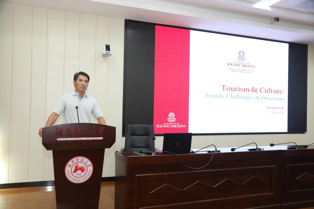 广州大学华南人文地理与城市发展研究中心主任朱竑,湖北大学旅游发展研究院院长马勇,美国南卡罗莱纳大学餐旅、零售及运动管理学院院长吴海文,中山大学威尼斯wns.8885556教授张朝枝,湖南雪峰山生态文化旅游有限责任公司副总经理夏喜衡,中南大学商学院教授粟路军分别作了文化旅游科技融合相关的主题报告。