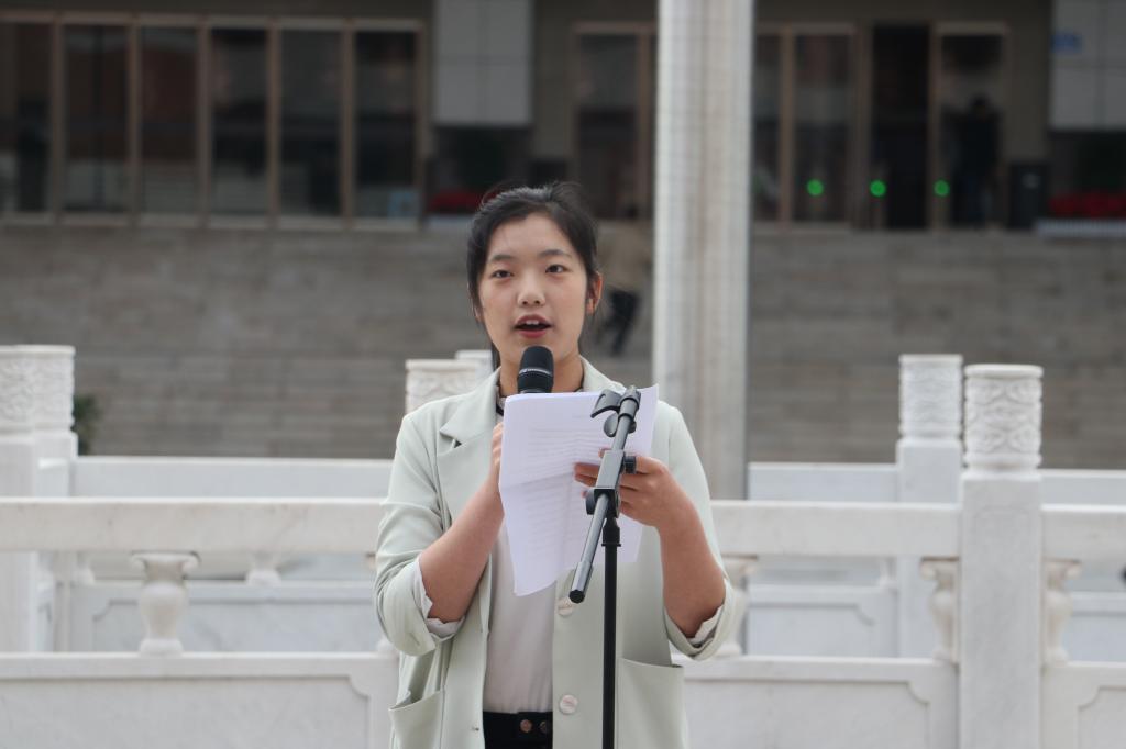 学生代表威尼斯wns.8885556杨静和公共管理学院李梓怡分别做了主题演讲,主题分别是《我辈青年当努力》和《我是党的人》。他们以《少年中国说》为切入点,分享了建党百年中的一些青年故事,勉励大家做一名有理想、有担当、有能力的时代青年,不堕先人之志,不愧前辈之殇。