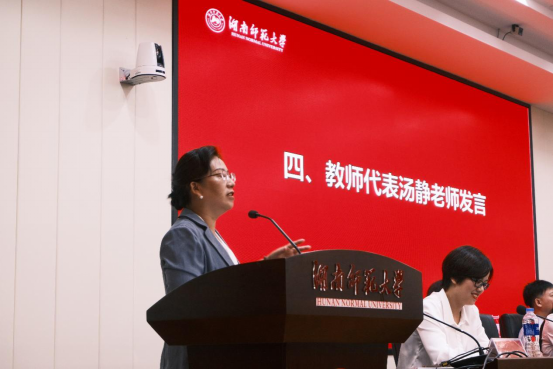 研究生老生代表薛婷婷、本科老生代表汪子懿发言,他们分享了自己的学习生活经验,并希望新同学能够做好人生规划、培养健全人格、找到大学方法、扎实成长、悦纳自己。