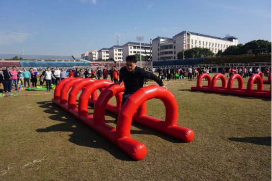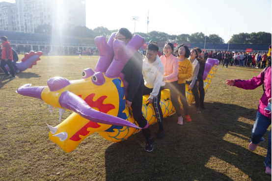 本次趣味运动会首次使用专业的器材设备,活动参与性强、安全性高,“龙行天下”“铁甲战车”“趣味投篮”“智勇闯关”四个项目形式新颖,吸引了30个部门工会代表队踊跃参赛。我院老师在本次趣味运动会中热情高涨,积极参与,全面配合,展示出学院良好的精神风貌。
