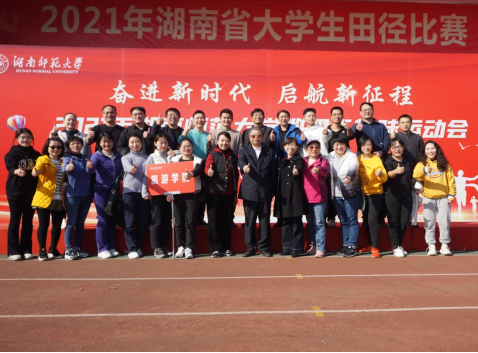 图为学校党委副书记周俊武、校工会常务副主席余英与我院队员合影