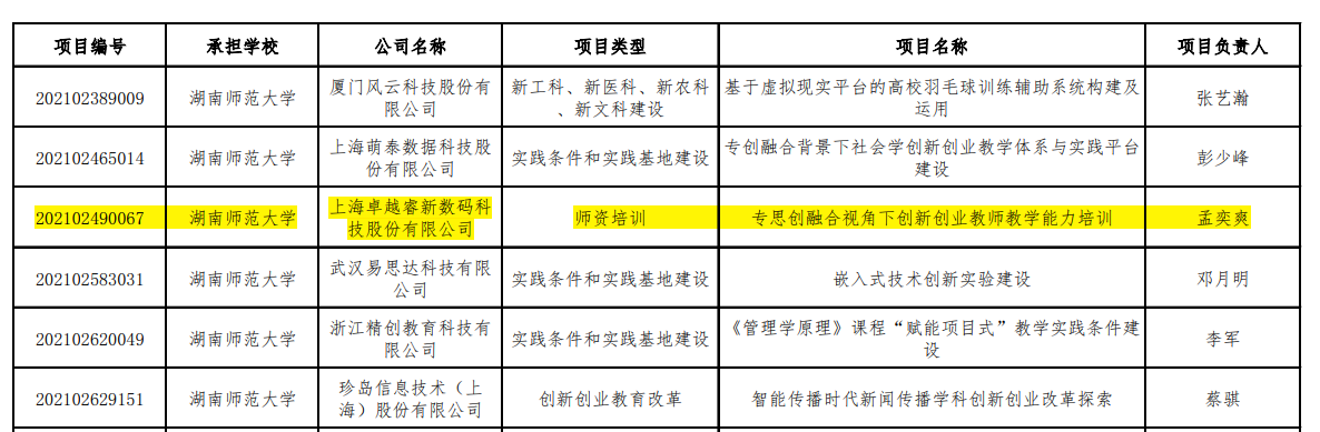 我院孟奕爽副教授课题组与上海卓越睿新数码科技股份有限公司进行合作共同开展的《专思创融合视角下创新创业教师教学能力培训》项目获得了教育部高等教育司2021年第二批产学合作协同育人项目立项。该项目将基于我院创新创业教育优势和建设一流课程的经验设计并实施创新创业教师师资培训。