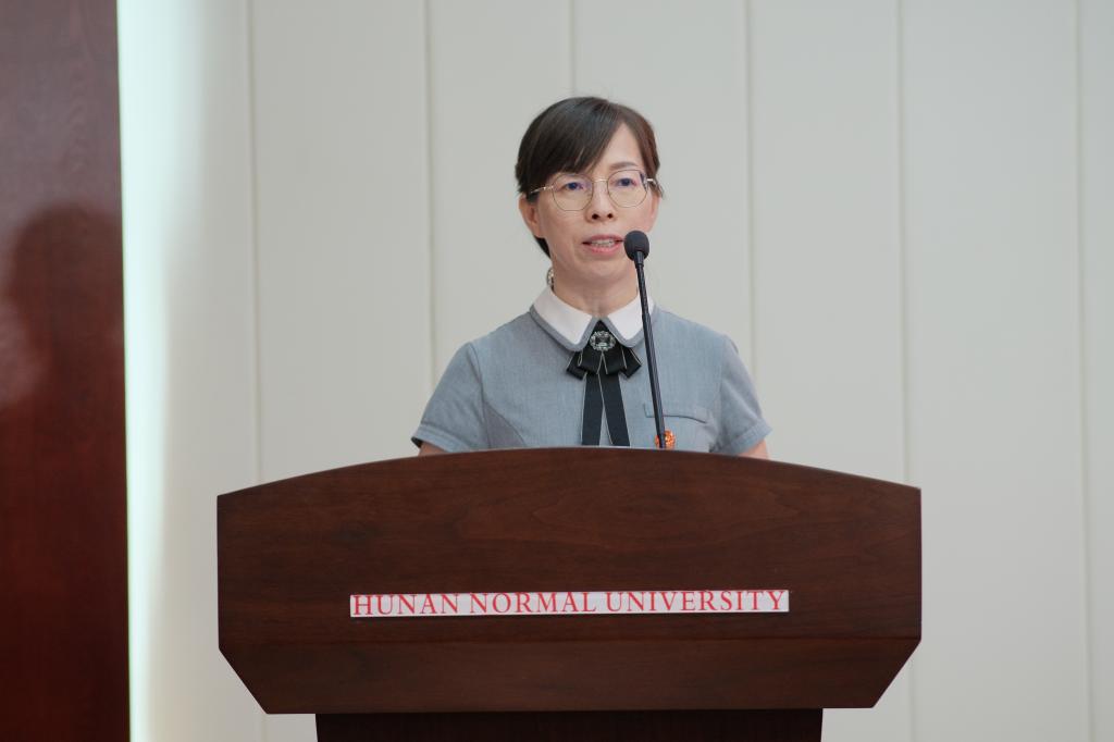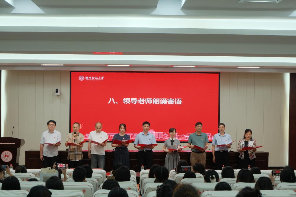 闵素芬宣读了2022年湖南省优秀毕业生表彰决定。她希望受表彰的同学谦虚谨慎、再接再厉,在青春的赛道上奋力奔跑;希望全体毕业生比优争先、砥砺前行,共同开创美好的未来。