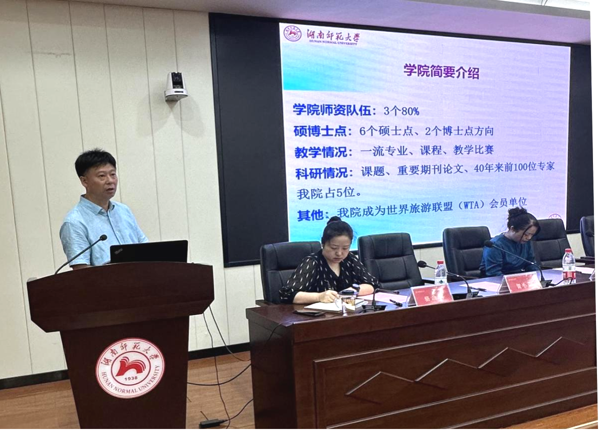 旅游管理系主任罗文斌作为研究生导师代表发言,他希望全体新生做好规划、摆正心态、明确目标,以全新的姿态迎接研究生新生活。