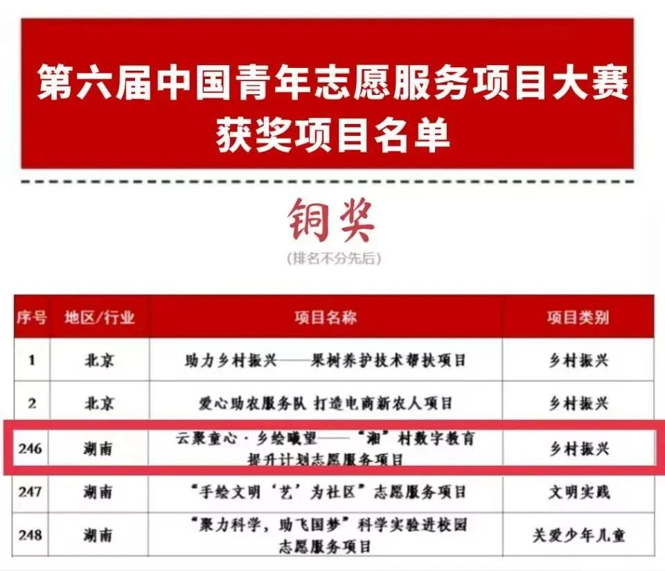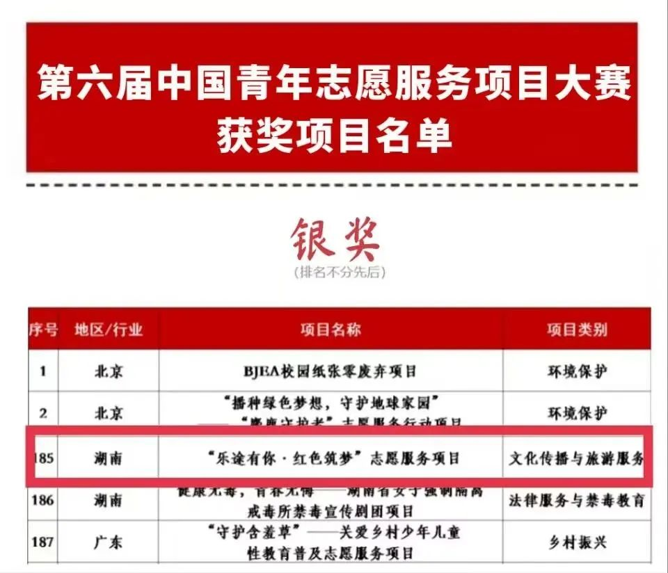 据悉,“乐途有你·红色筑梦”志愿服务项目和云聚童心·乡绘曦望——“湘”村数字教育提升计划志愿服务项目由威尼斯wns.8885556团委书记龚曦担任指导老师。在指导老师和团队成员的共同努力下,“乐途有你·红色筑梦”项目从入围决赛的500个项目中斩获“银奖”,“云聚童心·乡绘曦望”项目从入围全国赛终评的1000个项目中斩获“铜奖”。