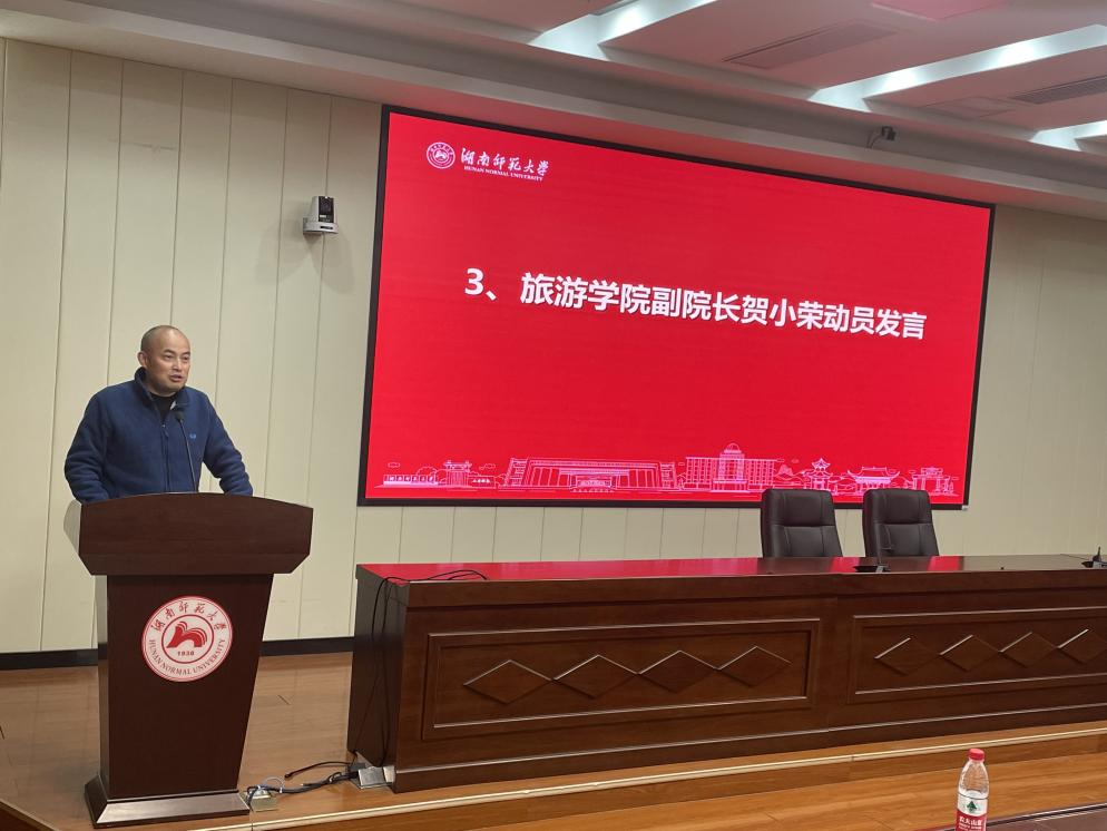 贺小荣进行了实习动员讲话,他充分肯定了会展系的实习部署工作,强调了各位实习生务必要遵守学校相关实习规定和实习单位各项规章制度,勉励实习生们要虚心请教,多问多学,积极发挥自己的专业优势,自信并积极展示自己,发扬吃苦耐劳和实干精神,为未来职业发展奠定良好的基础。