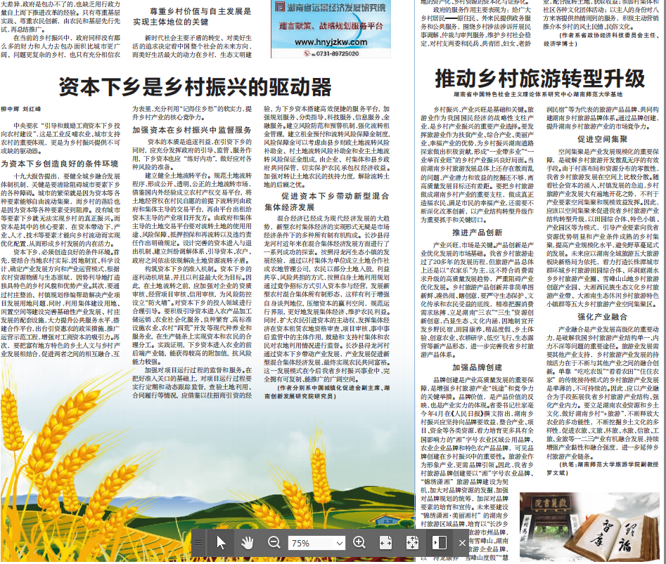 近日,我院罗文斌副教授在《湖南日报》发表题为“推动乡村旅游转型升级”的文章,全文如下: