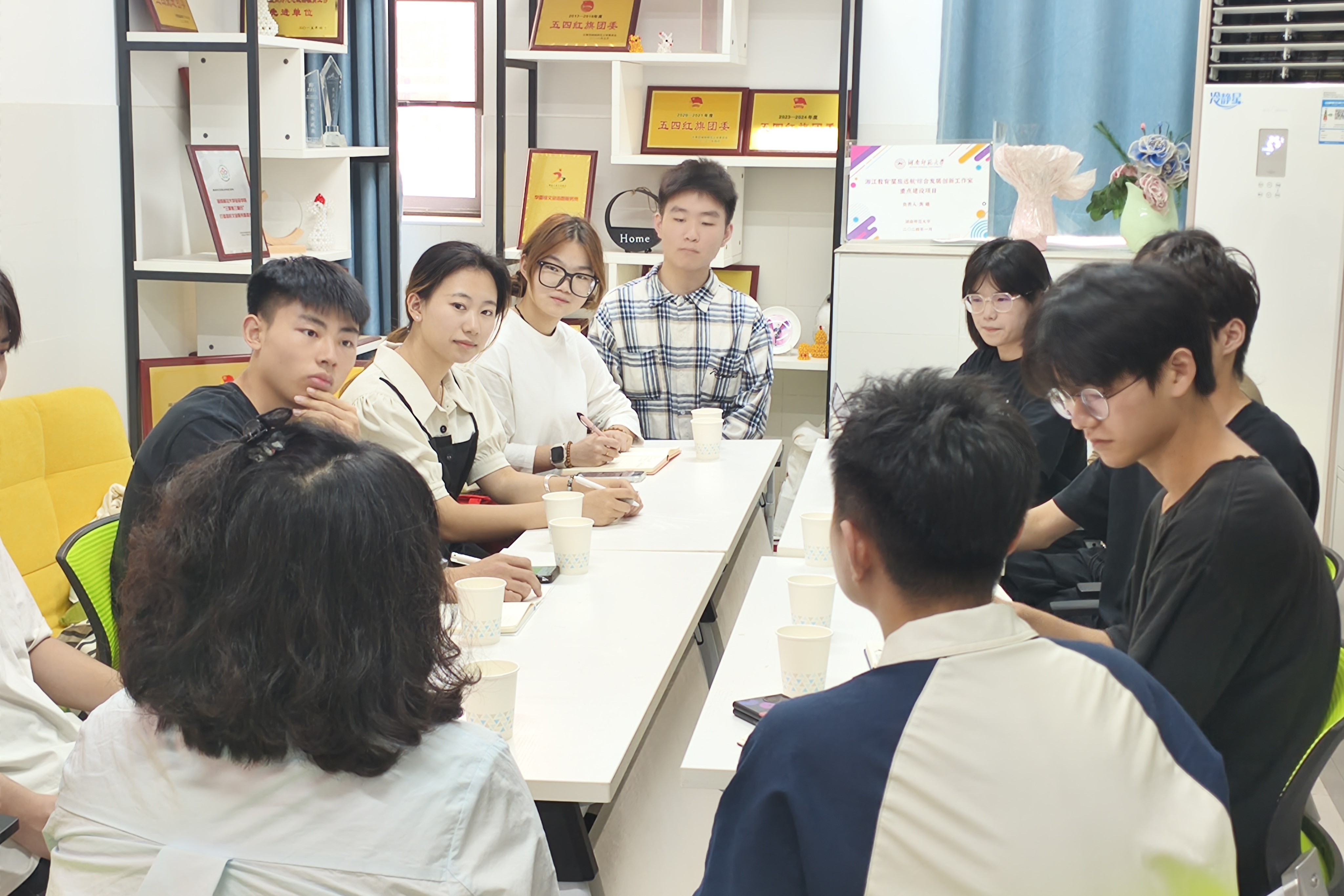 (通讯员 马淳 陈圣睿)5月23日下午,湖南水利水电职业技术学院“梁师e友”特色成长辅导室一行来到我院,与“星旅远航”辅导员综合发展工作室师生开展志愿服务工作研讨。湖南水利水电职业技术学院水利工程学院辅导员梁艺老师,我院团委书记龚曦老师以及工作室10名学生骨干参与交流。