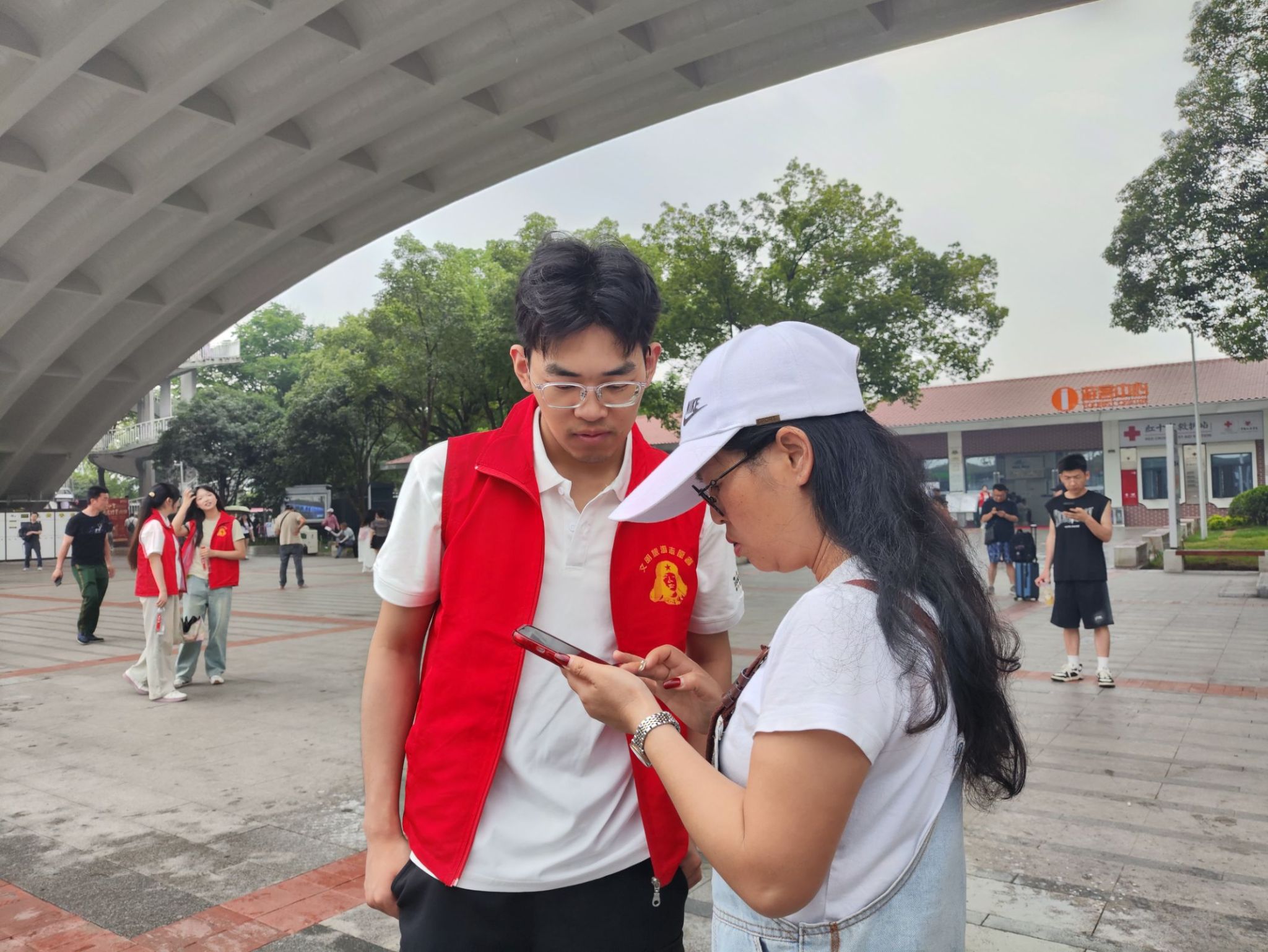 活动开展过程中,志愿者们身着红色志愿马甲,在橘子洲地铁站出口、游客中心、景区入口、主席像前等处对游客进行问题的解答和道路引导。志愿者们充分发挥专业优势,以热情饱满的精神风貌为游客们提供志愿服务。活动结束后,志愿者们统一返回游客服务中心进行合影留念并有序返回学校。