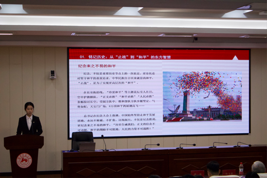 论坛由团委基建部部长高邱紫悦主持,陈梦韵、韩雨晨、沈婧仪、倪嘉琳担任主讲人。四位主讲人围绕抗战精神传承与青年担当,结合专业实践分享了红色文化在文旅创新、乡村振兴及职业发展中的时代价值。陈梦韵阐述了对抗战精神多维内涵的理解,并展示自己作为校招生办学生负责人如何将抗战精神在工作中实践应用;韩雨晨联系自身在校团委的工作经历,提出应将专业知识与红色资源结合,实现精神传承与模式创新;沈婧仪通过分享实践经验,讲述如何运用文旅专业知识让抗战精神在乡村助农中落地生根;倪嘉琳在女子国旗护卫队中通过日常训练与升旗仪式践行爱国主义,表示应将抗战精神转化为青年担当,在行动中展示坚韧中国青年形象。