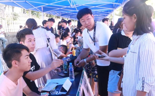 9月9日上午,我院于江边篮球场设置迎新点以帮助新生注册报道,新生报道活动也陆续展开。为使我院新生在开学报道这一天更具有意义和纪念性,学院安排一心双环工作人员放置特制照相板于江边篮球场为学生以及家长合影留念。我院一心双环工作人员分工明确、合理协作,有条不紊地完成2018级新生注册报道工作。