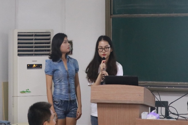 | 会展协会理事长于诗朦、团支书胡钰彬为新生介绍协会情况 |