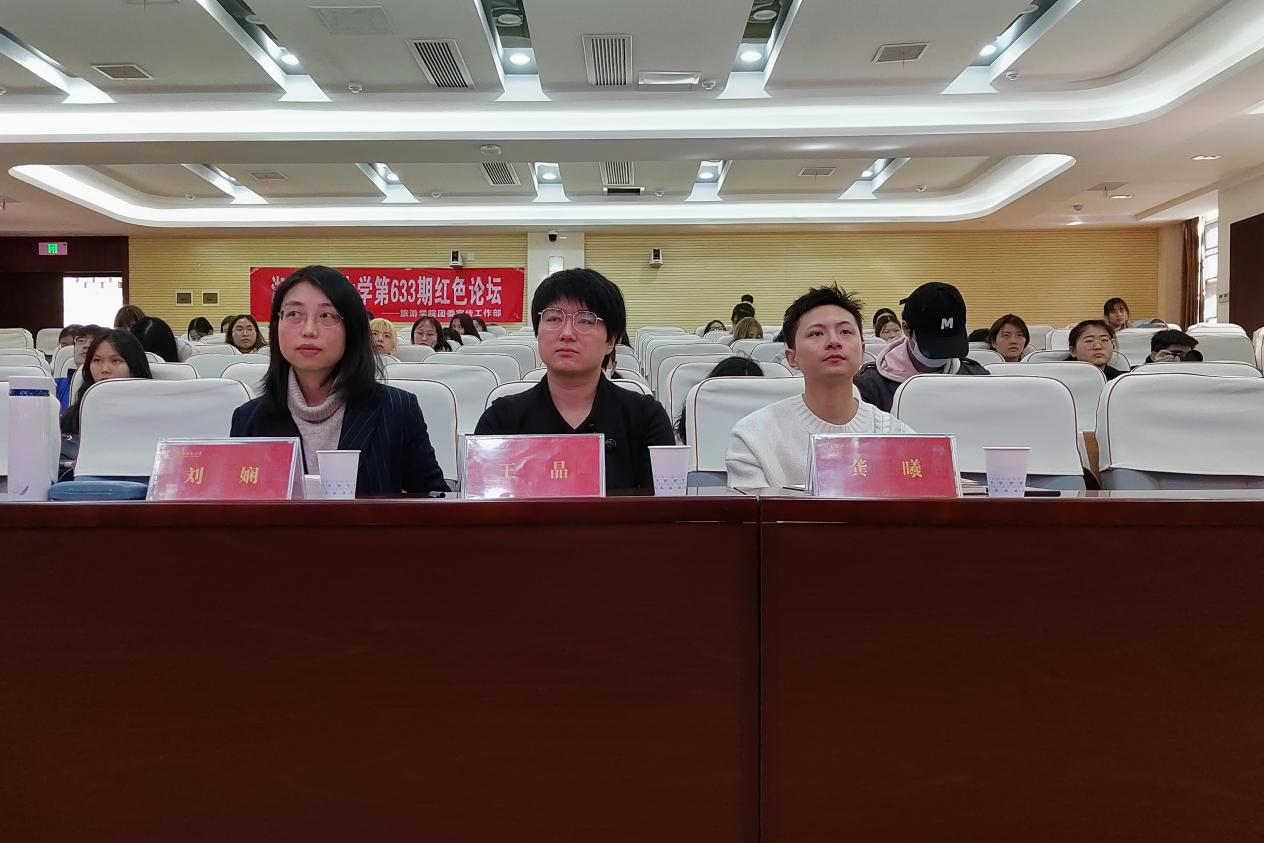 (通讯员 王晗 刘茜)11月25日,为进一步贯彻落实习近平总书记“七一”重要讲话精神,我院在中和楼234讲堂举办了以“弘扬伟大建党精神,发挥奋进磅礴力量”为主题的秋季红色论坛。论坛由2021级酒职班学生孙倩主持,我院副教授王晶、院团委书记龚曦、院团委兼副书记刘娴出席此次活动。