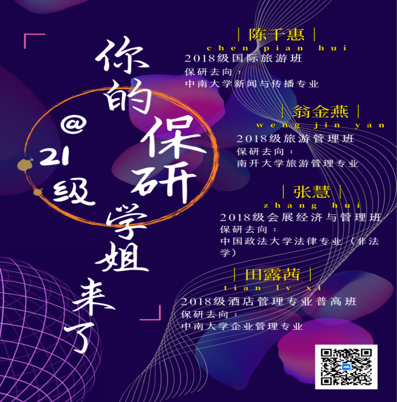 聚焦学业,专业选择有认同。4月初,正值第一轮专业分流、转专业意向摸底,疫情的爆发必然会驱使新生们思考旅游行业所承受的巨大冲击,产生专业“负向”体验。因此,学院系统化展开专业教育,一方面辅导员下寝宣讲“乡村振兴”“旅游扶贫”等国家政策和疫情趋缓后行业潜能,一方面邀请系主任、“海归”青教团、保研生、境外交换生上线“云讲堂”,开辟“专业前景你知道”“保研学姐来啦”“境外求学那些事”等多板块,为专业认知提供更更宏大的视野,做到疫情防控和学风建设“两不误、双促进”。