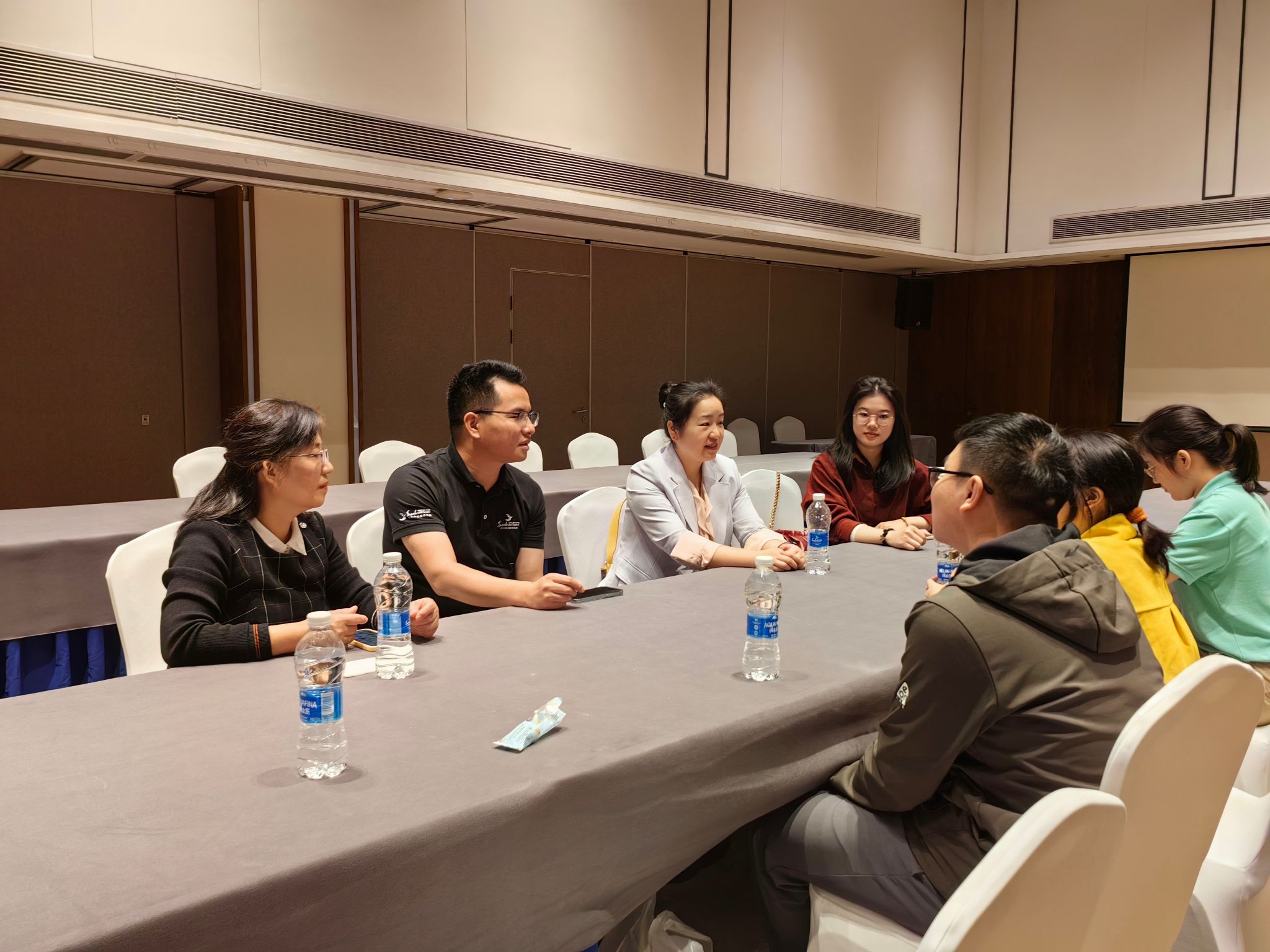 杭州和莫干山开元森泊度假乐园人力资源总监樊海贵、蒋淑芳热情接待了骆劲华一行,双方就人才培养、产学研合作、就业实习等方面进行深入交流。骆劲华代表学院对用人单位的热情接待表示了感谢,并就学院的基本情况、办学特色、人才培养模式进行了具体介绍。随后,通过座谈会、到岗看望等形式询问实习学生工作、生活和学习情况,各实习生积极分享近2个月以来的实习感悟和收获。骆劲华在听取实习生们的汇报后,肯定并鼓励了同学们积极向上的实习态度。汤静认真询问了每一位同学对未来考研、就业的选择,从专业的角度为每一位同学提供了细致、具体的指导,并对同学们提出的问题进行了详细解答。