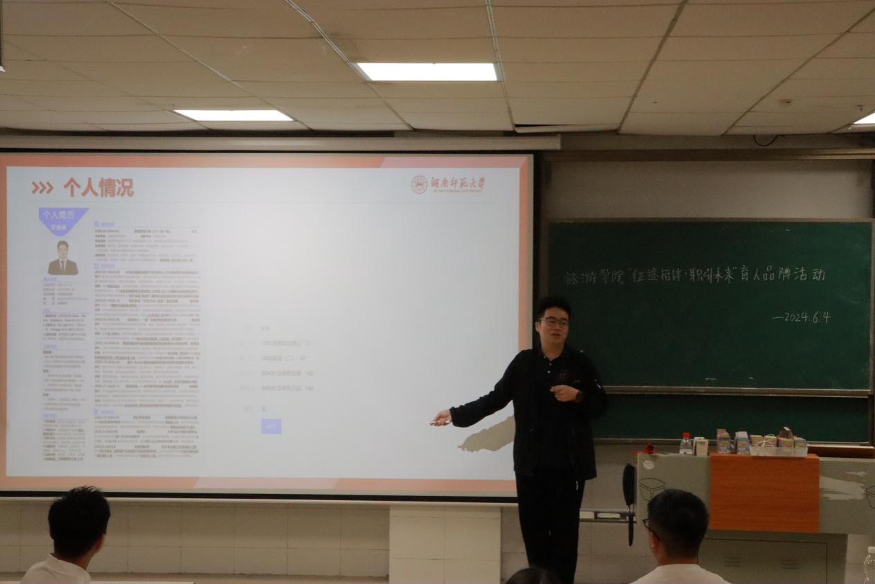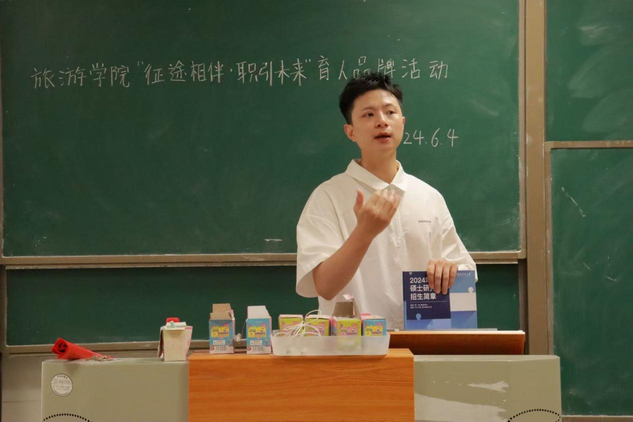 (通讯员 邓玉晶)2024年6月4日中午12:30,我院2022级于至善楼210开展“征途相伴•职引未来”育人活动,我院邀请保研南开大学吴攀、考研中国人民大学罗俊祺、国考公务员税务局刘淦浩进行了经验分享,院团委书记、辅导员龚曦以及2022级威尼斯wns.8885556全体同学参与此次活动。