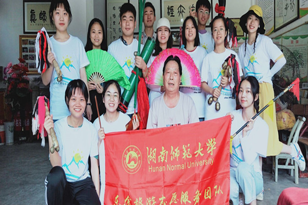 里耶民族花灯艺术团成立于2000年,风雨19载,其中走出来的不少非遗民俗技艺传承者俨然已成为当地一道亮丽的风景线。队员们在参观艺术团的过程中颇有收获,大家齐聚一堂学唱里耶山歌、打梯玛、跳摆手舞,体会传统技艺所带来的乐趣,寓教于学,更具有精神意义。除此之外,队员们还对当地居民进行了非物质文化遗产问卷调查,通过当地人的视角来加深对梯玛、花灯、酉水号子等非遗技艺的了解,从而更好地传承与传播当地非遗技艺和民俗特色。