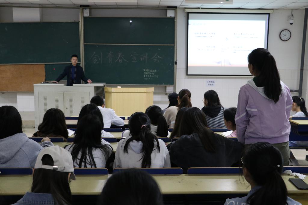 (通讯员 汪子懿 高宇宁 袁喻彬)11月1日晚,我院团委创新创业部和青年发展工作部于景德楼304教室举办了“创青春大赛宣讲会”。创新创业部部长方静怡、社会实践部部长谌秀凤、青年传媒中心新闻采编部部长朱彤出席了此次活动,活动由创新创业部副部长柯丹主持,2016级张津豪同学担任主讲人。