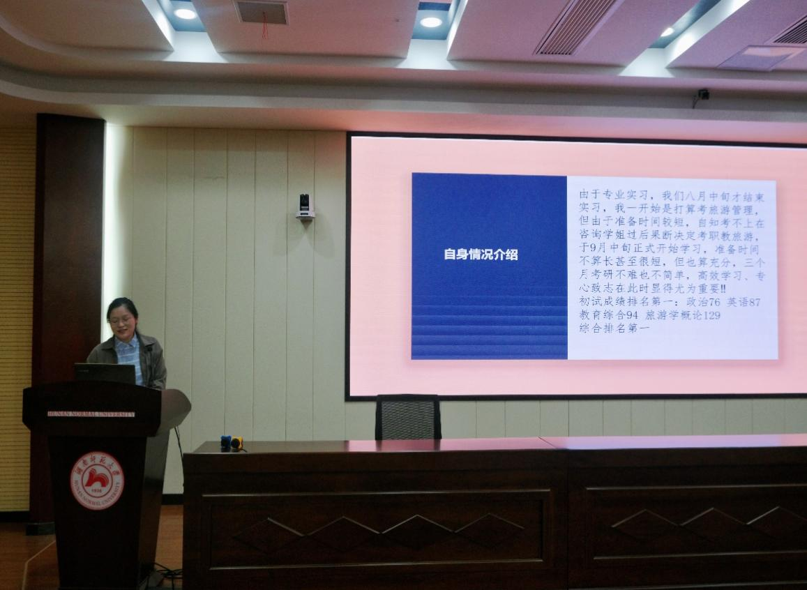 (通讯员 周娜 周依林)5月12日,我院在中和楼234开展主题为“砥砺青春,研梦起航”的考研经验分享交流会。会议由我院20级辅导员邱粤湘主持,主讲人有威尼斯wns.88855562021级旅游管理学硕士研究生邹佳、2021级旅游地理学硕士研究生李天宇、2021级学科教学硕士研究生李昕、2018级旅游管理专业优秀毕业生刘青云、2018级旅游管理专业优秀毕业生段婷。