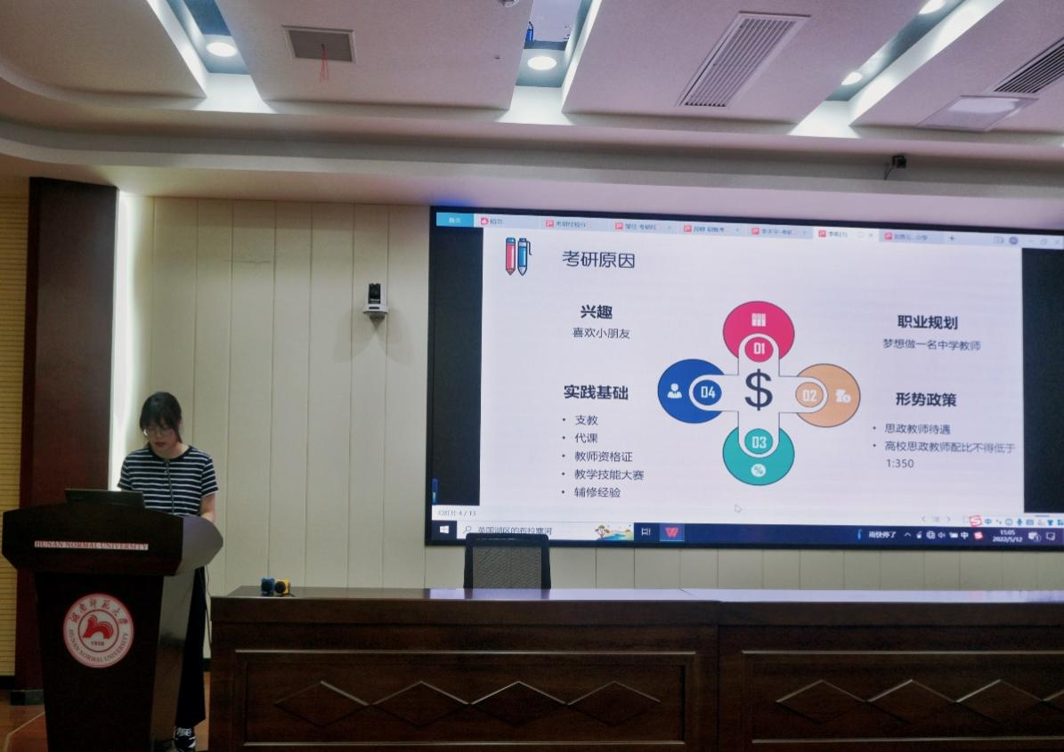 邹佳介绍了查询考研招生信息的相关网站,并分享了各考试科目的复习经验以及考场上的注意事项。段婷针对如何选择学校专业、备考时间规划提出了建议。李天宇结合自身情况分享了考研的前期准备,强调了高效率的重要性。李昕对考情进行分析,给出了调整心态的方法。刘青云通过自身的跨考经验,就如何平衡考研、实习之间的关系提出了新思路。