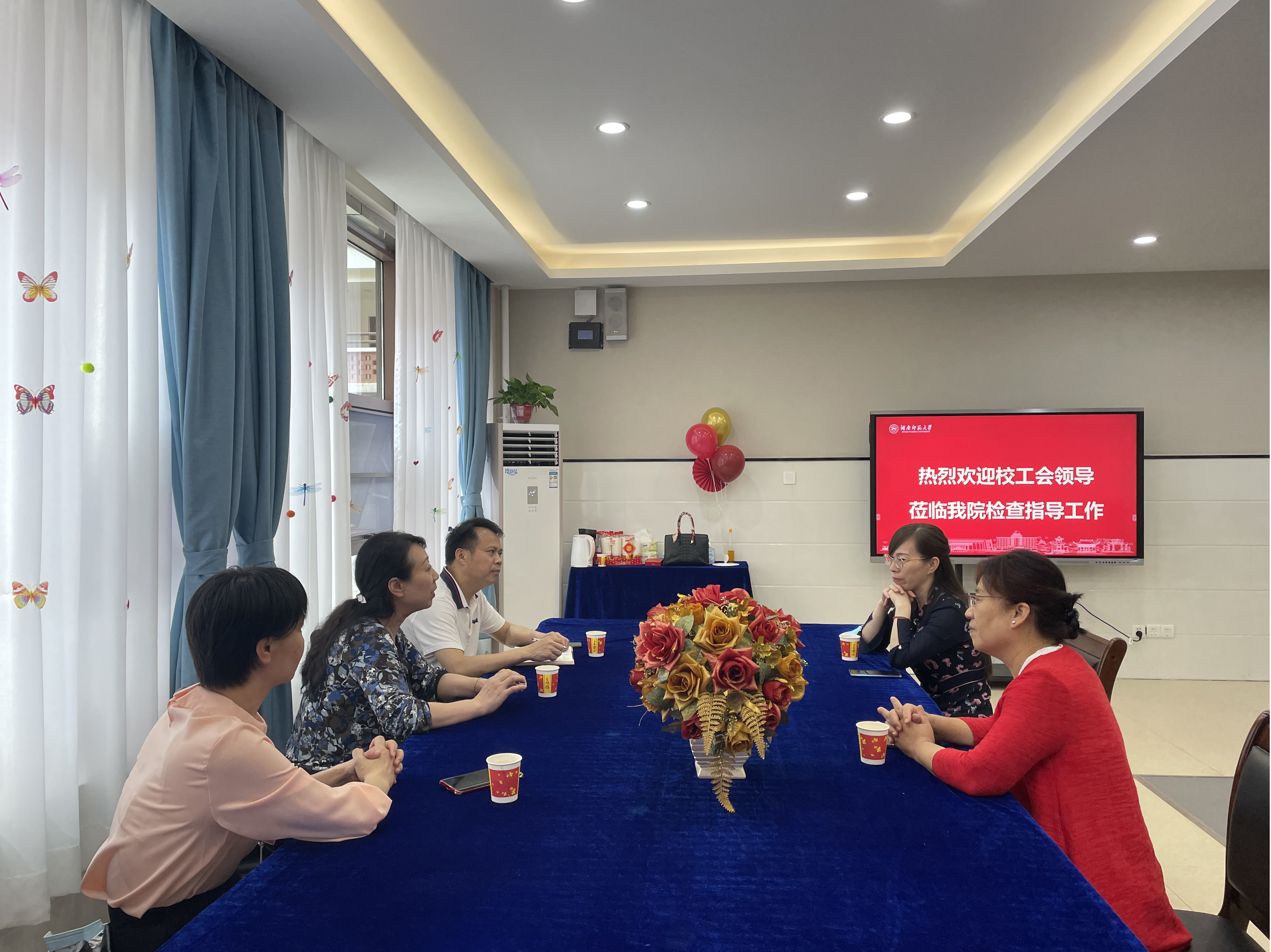 4月26日下午,校工会常务副主席余英、校工会副主席杜汉文和校工会组织宣传谢俊老师一行来学院调研“教工小家”的建设情况,实地查看了学院的多功能活动室,并就如何建好威尼斯wns.8885556“教工小家”开展了座谈会,学院党委书记闵素芬,学院工会主席汤静出席,学院工会委员及其他工会会员参与了座谈会。