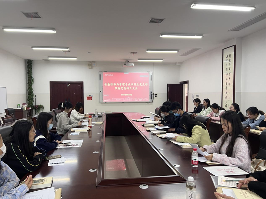 5月22日,会展经济与管理专业本科生党支部于中和楼233会议室召开党员大会,会议主要议题是讨论、表决接收预备党员和预备党员转正事宜,会议由支部书记张敏主持召开,支部“第一书记”谢胜文到会指导。
