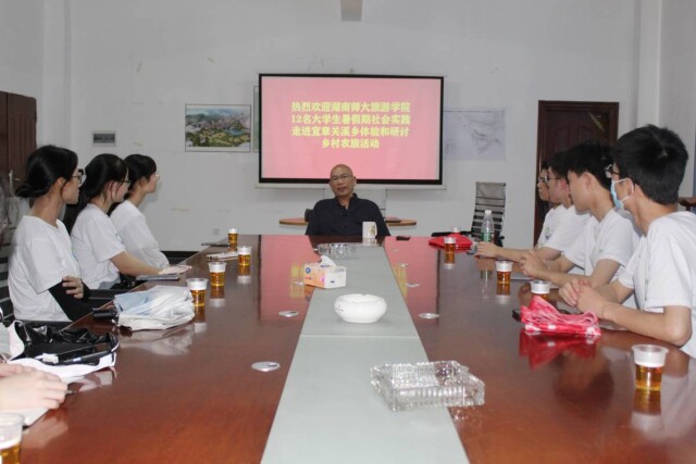 当天下午,实践团与东之仙生态旅游发展有限公司董事长胡耀中进行会谈。会谈期间,胡耀中表示目前东源村发展旅游业遇到的最大的问题就是客源引流,并就此向实践团详细介绍了东源村莽山森林观光小火车项目,打造引流新渠道,纾解产业困境。实践团根据会谈中获得的信息进行探讨,调整调研行程,使调研目的更加明确,为调研成果的可行性打下坚实基础。