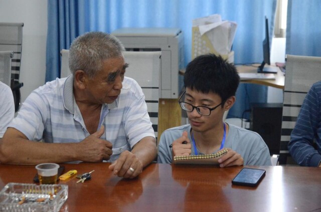 (图为成员采访余春杰老人 秦珂君摄)